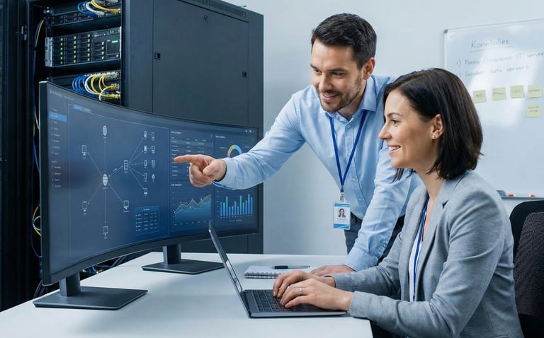 Cuidamos da infraestrutura tecnológica do cliente como se fosse nossa. Do primeiro contato à manutenção contínua, estamos presentes em cada etapa com dedicação total.